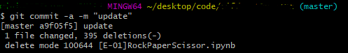 추가로 commit할 때 -a 옵션을 붙이면 삭제된 파일만 반영된다고 한다.