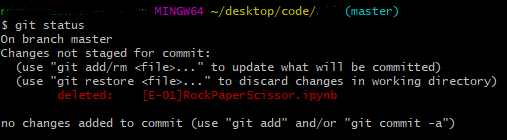 git status로 했을 때 삭제 됐다고 뜨는데 add를 해도 안먹고 commit을 해도 반영이 안되는 것이다...