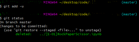 그래서 구글링 한 결과 add에 -u 옵션을 붙여주면 수정되거나 삭제된 파일을 반영할 수 있다고 한다.