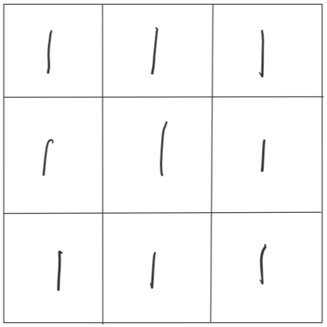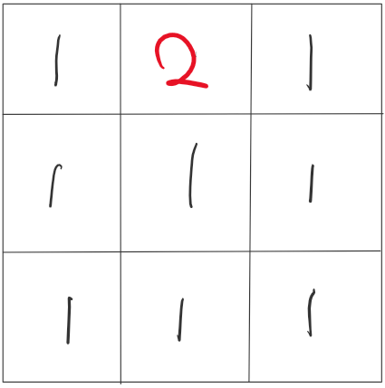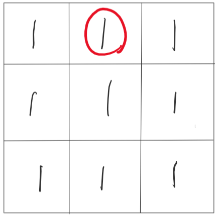 여기 3*3에 각 cell의 값이 1인(셀 맞겠지..?) 입력값이 있다.