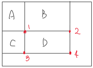 4지점에서 2지점과 3지점을 뺀 뒤 1지점을 더한다.(1지점이 두 번 빠지게 되니까)