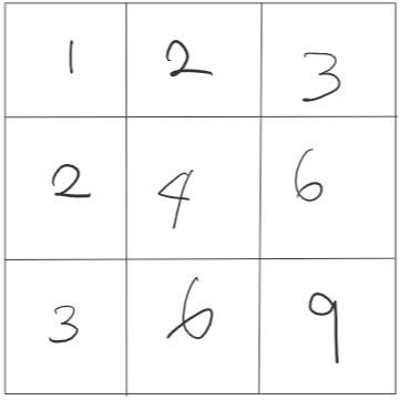 이와 마찬가지로, 첫번째 열의 두번째 행도 2가 될 것이다.