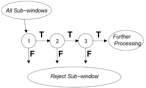 T로 분류된 sub-window는 T로 분류되면 분류될 수록 더 강한 strong classifier를 만나며 분류된다.